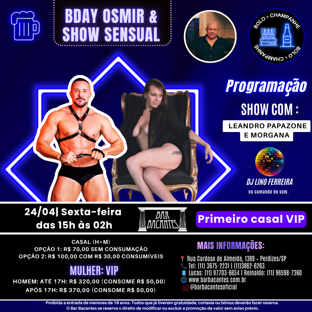 TERMOS PARA O USO:1 – Nunca agredir verbalmente, discriminar um frequentador, amigo ou funcionários do Bar Bacantes;2 – Proibido mensagens com palavras de baixo calão;3 – Proibido mensagens pedindo companhia para ir a casa;4 – A partir de agora, é proibido mensagens contendo telefone e e-mail, caso a mensagem tiver essas informações ela não será publicada ou poderá ser modificada;5 – O Bar Bacantes tem o direito de modificar qualquer postagem sem aviso;6 – O Bar Bacantes não se responsabiliza caso alguma informação deixada no mural, for usada com má fé;7 – Qualquer reclamação e sugestão, será excluída, caso queira enviar uma reclamação ou sugestão, deve ser enviada para contato@barbacantes.com.br;8 – Não é permitido convites para eventos externos, anúncios com propostas liberais que não tenham ligação com os eventos do Bar Bacantes.
